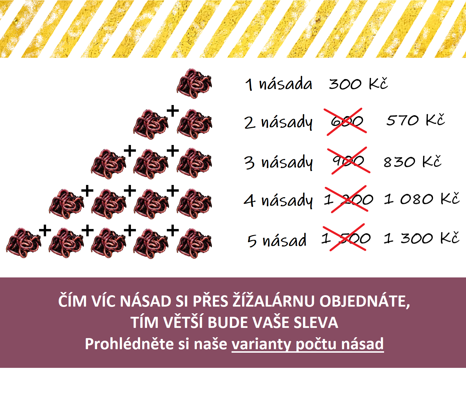Jsme malinký e-shop věnující se prodeji kalifornských žížal a potřeb pro vermikompostování. Chovu kalifornských žížal se věnujeme už pěknou řadu let. Tento hezký a hlavně praktický koníček jsme za tu dobu pomohli zprostředkovat nejednomu chovateli.